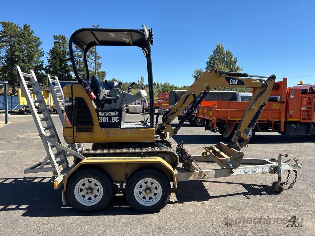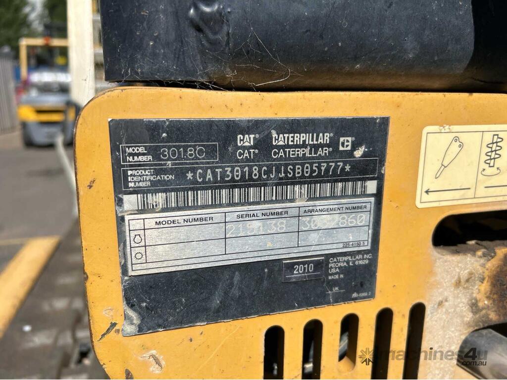 CP: CIRCA 2010,Caterpillar,301.8C,Compact Excavator & Trailer Package,3 Cyl,Diesel,Odometer not visible,467 (Hrs. Showing on Hour meter),Colour: Yellow,Unregistered,Serial No: CAT3018CJJSB05777,ROPS No: undefined,Sold with No Plates,Key No: NO KEY