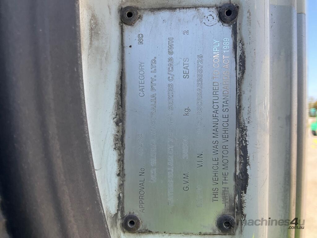 CP: 11/2010,Caterpillar,CT 700-15L,Tipper,Automatic,Airbag Suspension,CAT C15,6 Cyl,Diesel,1024317 (Kms. Showing on Odometer),Colour: White,Rego. No: NP(XW20BS), Unregistered VIC,VIN: 1HSJRSCR5AE355726,Key No: 250,GVM: 24500,GCM: 72000,Sold with No Plates,Key No: 250