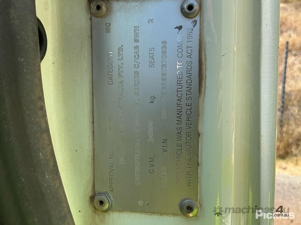 CP: 12/2010,Caterpillar,CT700,Prime Mover,Manual,Leafspring,Odometer not visible,Hourmeter not visible,Colour: White,Rego. No: NP(1IB0082), Unregistered,VIN: 1HSHXSBR6BT370836,Length: 26 ft,GVM: 24500,GCM: 57000,Sold with No Plates,WOVR Status: WOVR N/A,Incident Type: Impact