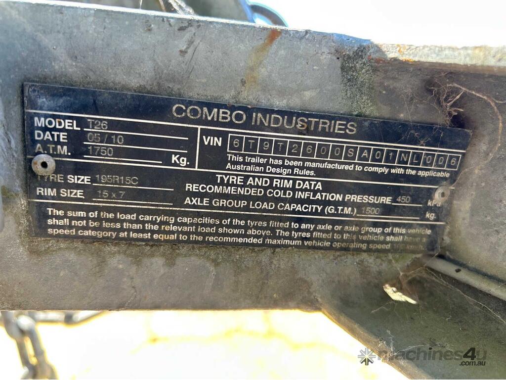 CP: 05/2010,Combo Industries,T26,Single Axle Cable Trailer,Hubometer not visible,Colour: Silver,Rego. No: S841TAX SA,VIN: 6T9T2600SA01NL006,Sold with No Plates