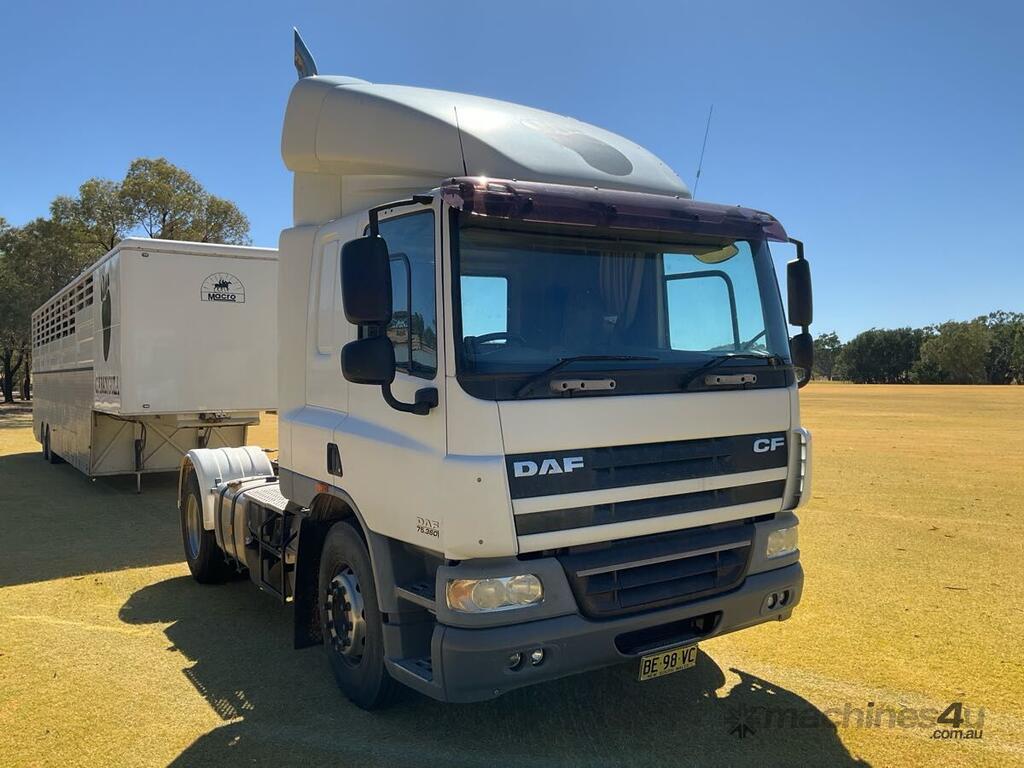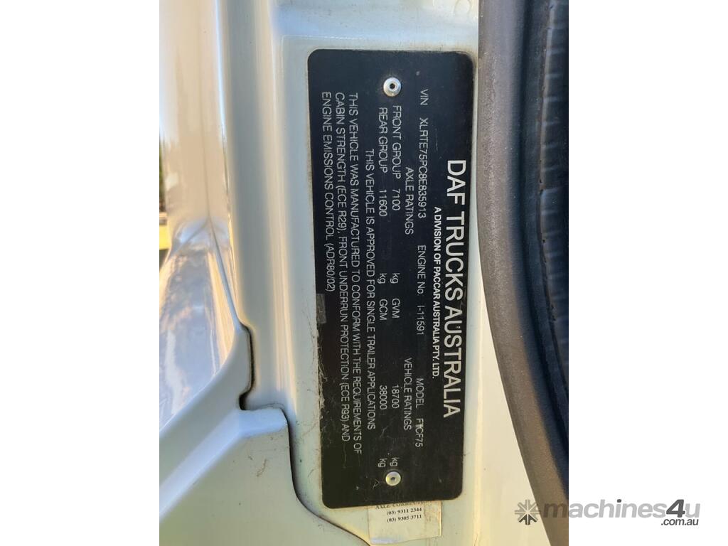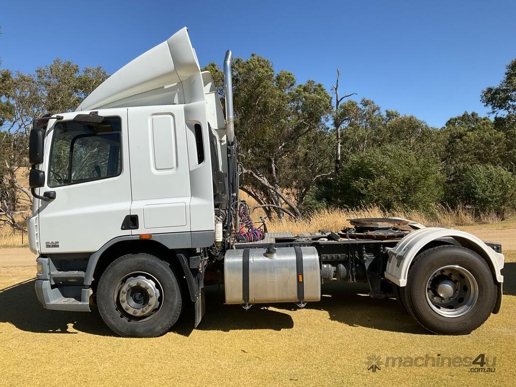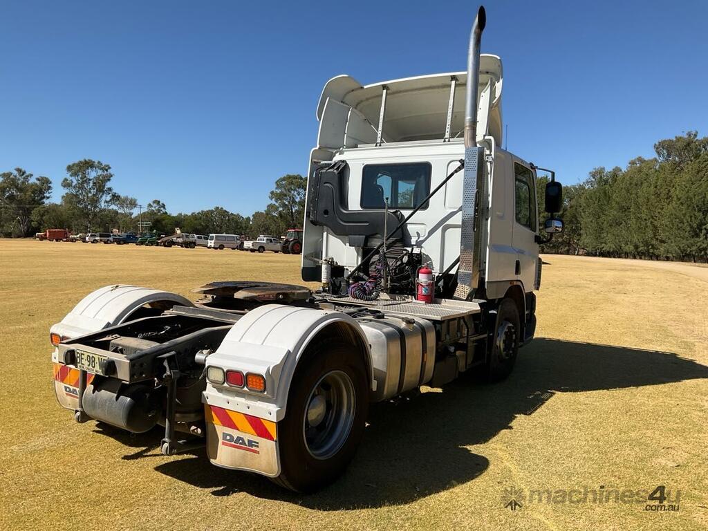 CP: 01/2010,DAF,FT CF75,Prime Mover,Automatic,Paccar PR,9.2 Ltr,6 Cyl,Diesel Turbo,Direct Injection Turbo intercooled,118535 (Kms. Showing on Odometer),Hourmeter not visible,Colour: White,Rego. No: BE98VC NSW,VIN: XLRTE75PC8E835913,GVM: 18700,GCM: 38000,Plates to All