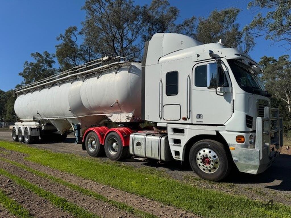 Truck and trailer, 2010 Freightliner Argosy FLH, Detroit Series 60, only 776k kms, 18sp manual, Meritor diffs, diff locks, gearbox rebuild and clutch replacement 70k kms ago, comes paired with Kockums STF3-34 pneumatic dry bulk tanker, 34T ATM, 5 compartments, rear ladder. All service history is available from the last 2 years. Selling combination for $100,000+GST