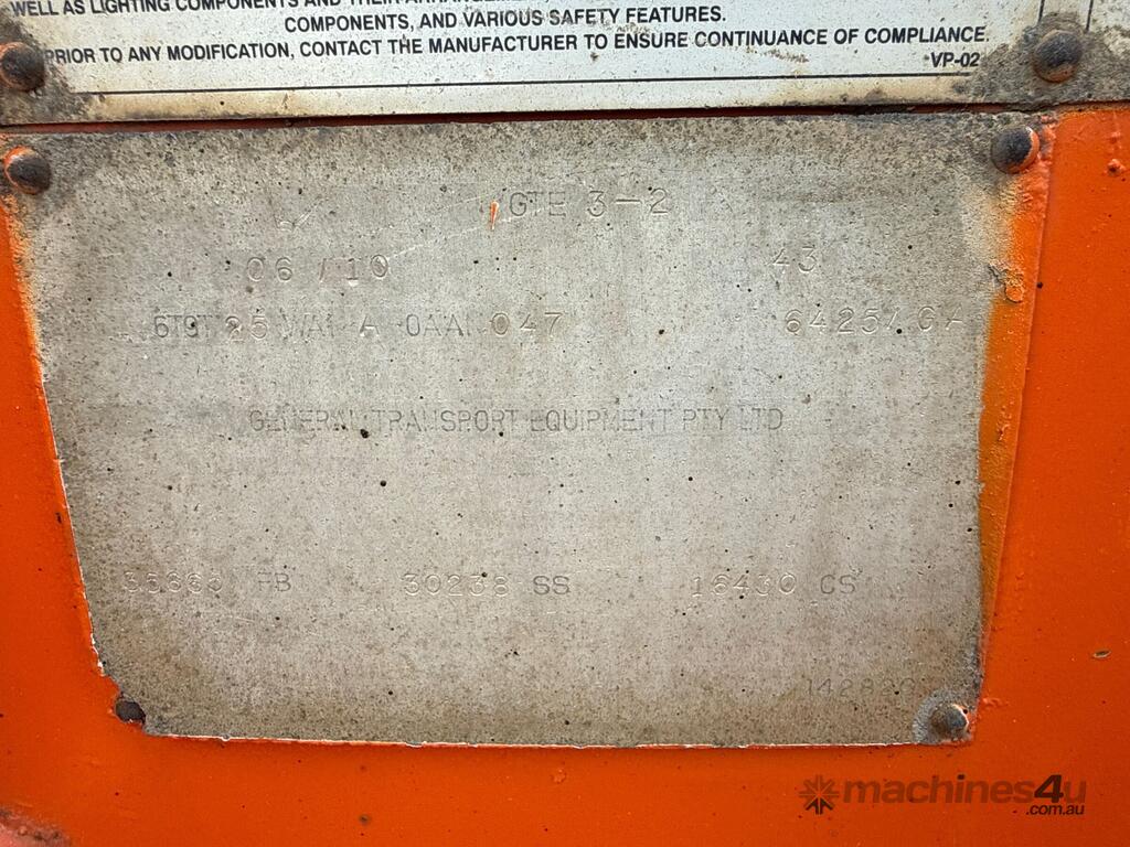 CP: 06/2010,Built: 06/2010,General Transport Equipment,GTE 3-2,Tri Axle Side Tipper Combination,980473 (Kms. Showing on Hubometer),Rego. No: SY07BH,VIN: 6T9T25WA1A0AAN044,Sold with No Plates