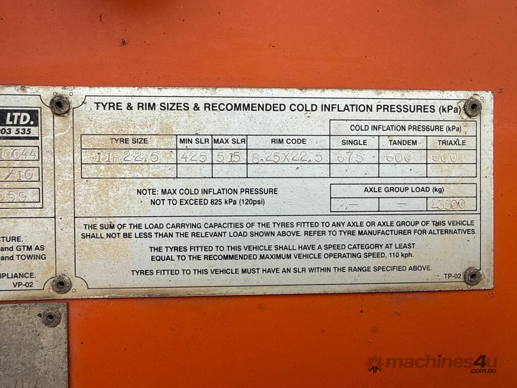 CP: 06/2010,Built: 06/2010,General Transport Equipment,Tri Axle Side Tipper,980473 (Kms. Showing on Hubometer),Rego. No: SY07BH,VIN: 6T9T25WA1A0AAN004,Sold with No Plates