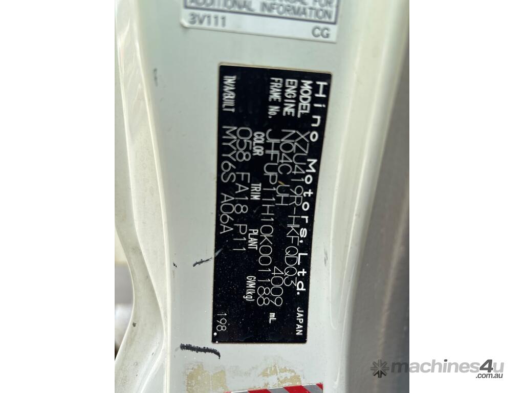 CP: 09/2010,Hino,300 716,Table Top,Manual,Leaf Spring Suspension ,Hino,4 Cyl,Diesel Turbo,6 Gears,101142 (Kms. Showing on Odometer),Hourmeter not visible,Colour: White,Rego. No: NP(C90BL), Unregistered TAS,VIN: JHFUP11H10K001188,Length: 6.5 M,GVM: 10000,Sold with No Plates