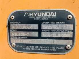 CP: CIRCA 2010,Hyundai,HSL 650-7,Odometer not visible,2607 (Hrs. Showing on Hour meter),Colour: Yellow,Unregistered,Serial No: S80110085,ROPS No: HSL850-70085,Sold with No Plates