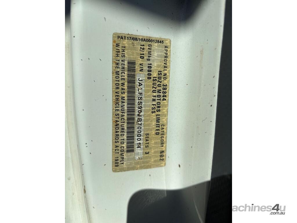 CP: 12/2010,Isuzu,F Series,FSS 550,Off Road Coach,Manual Overdrive,5.2 Ltr,4 Cyl,Diesel,6 Gears,105699 (Kms. Showing on Odometer),Hourmeter not visible,Colour: White,Rego. No: NP(1CIV490), Unregistered,VIN: JALFSS90JB7000014,Length: 8.7 M,GVM: 10000,GCM: 15000,Sold with No Plates