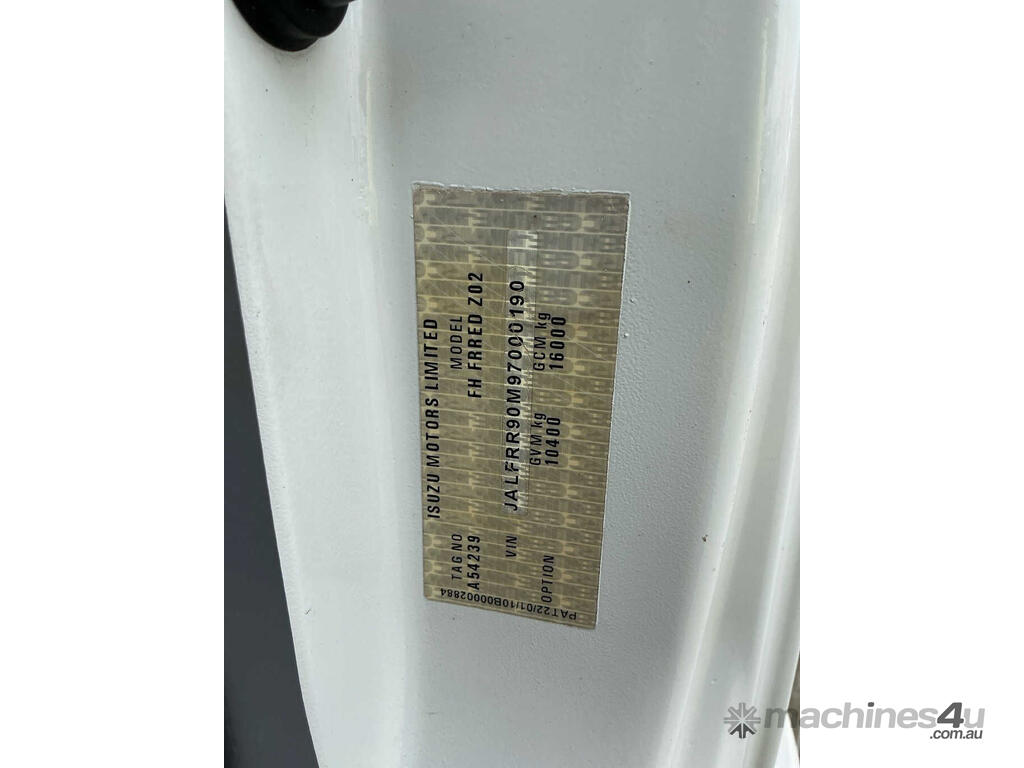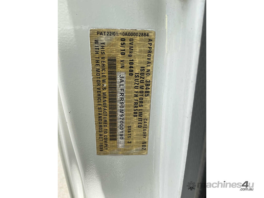 CP: 05/2010,Isuzu,FRR500,Curtainsider,Automatic,Spring,4 Cyl,Diesel,700817 (Kms. Showing on Odometer),Hourmeter not visible,Colour: White,Unregistered,VIN: JALFRR90M97000190,GVM: 10400,GCM: 16000,Sold with No Plates