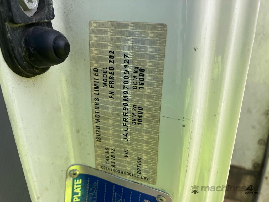 CP: 02/2010,Isuzu,FRR500,Curtainsider,Automatic,spring ,4 Cyl,Diesel,Odometer not visible,Hourmeter not visible,Colour: White,Rego. No: NP(XB21QP), Unregistered,VIN: JALFRR90M97000127,Length: 8 m,GVM: 10400,GCM: 16000,Sold with No Plates,WOVR Status: WOVR N/A,Incident Type: Malicious