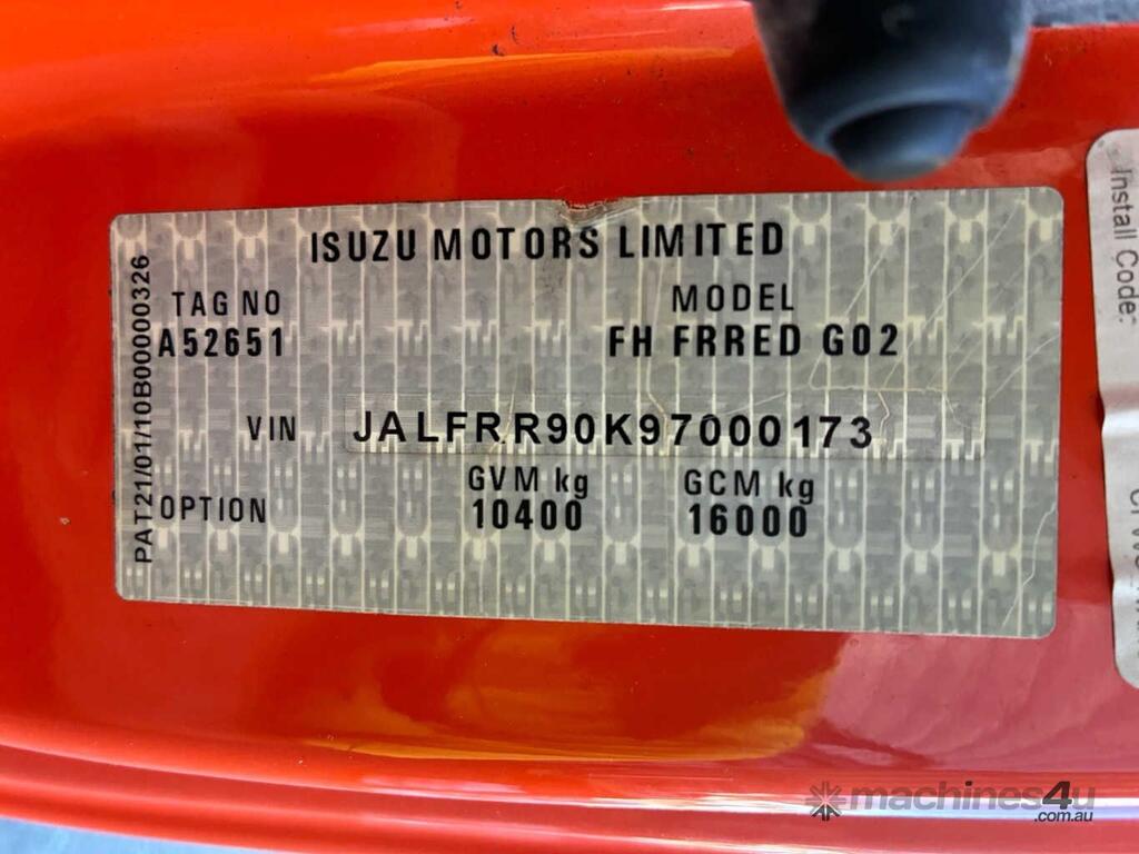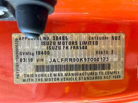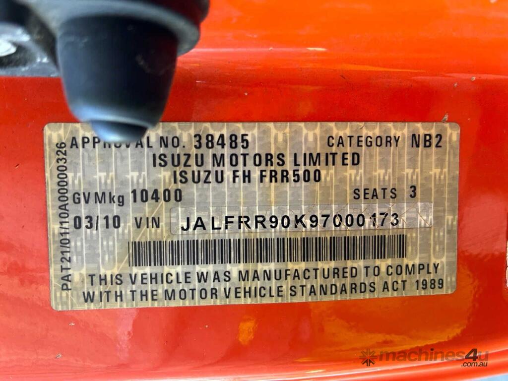 CP: 03/2010,Isuzu,FRR500,Pantech,Automatic,Spring,4 Cyl,Diesel,224345 (Kms. Showing on Odometer),13716 (Hrs. Showing on Hour meter),Colour: Orange,Rego. No: 708MWW QLD,VIN: JALFRR90K97000173,Key No: 165,GVM: 10400,GCM: 16000,Sold with No Plates,Key No: 165