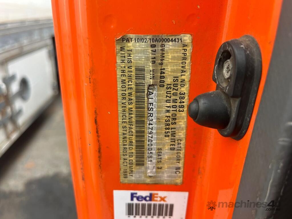 CP: 07/2010,Isuzu,FSR 850 Long,Curtainsider,Automatic,Leaf Spring ,6 Cyl,Diesel Turbo,545291 (Kms. Showing on Odometer),Hourmeter not visible,Colour: Orange,Unregistered,VIN: JALFSR1,GVM: 14000,Sold with No Plates