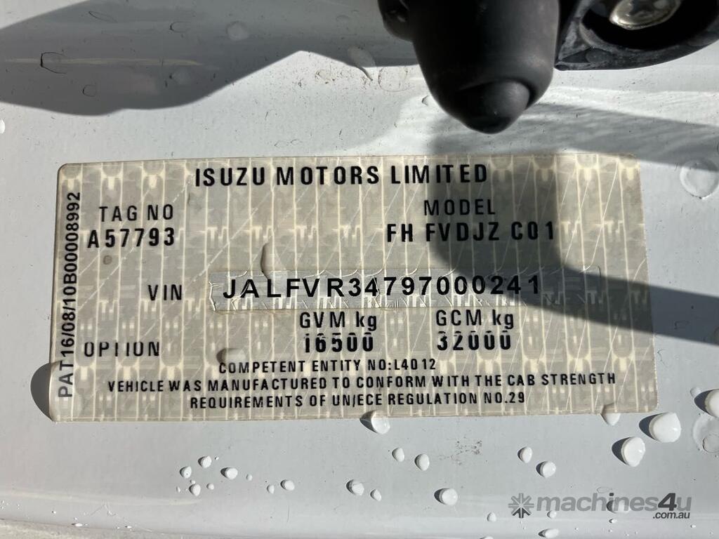 CP: 09/2010,Isuzu,FVD1000,Crane Truck (Table Top),Automatic,Airbag,Sitec,6 Cyl,Diesel,Turbo,140861 (Kms. Showing on Odometer),3783 (Hrs. Showing on Hour meter),Colour: White,Rego. No: NP(BL57GJ), Unregistered NSW,VIN: JALFVR1,GVM: 16500,GCM: 32000,Sold with No Plates