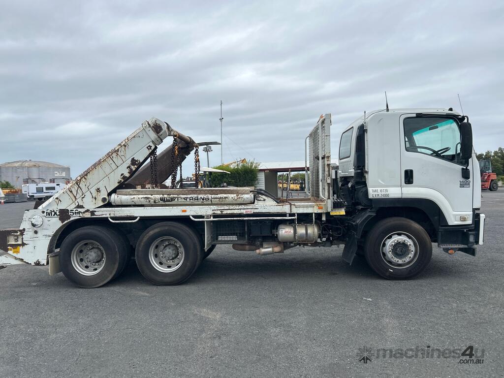 CP: 01/2010,Isuzu,FVZ 1400,Skip Bin Truck,Manual,Airbag,6 Cyl,Diesel,505865 (Kms. Showing on Odometer),21408 (Hrs. Showing on Hour meter),Colour: White,Rego. No: XB42WC QLD,VIN: JALFVZ34P97000375,Key No: 265,GVM: 24000,GCM: 36000,Sold with No Plates,Key No: 265