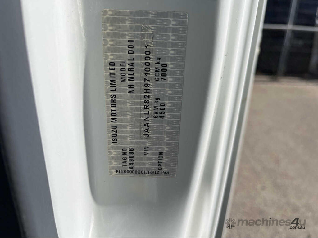 CP: 03/2010,Isuzu,NLR200,Table Top,Automatic,Leaf Spring,4 Cyl,CNG,29200 (Kms. Showing on Odometer),Hourmeter not visible,Colour: White,Unregistered,VIN: JAANLR82H97100001,Key No: P170,Length: 5.8 m,GVM: 4500,GCM: 7000,Sold with No Plates,Key No: P170