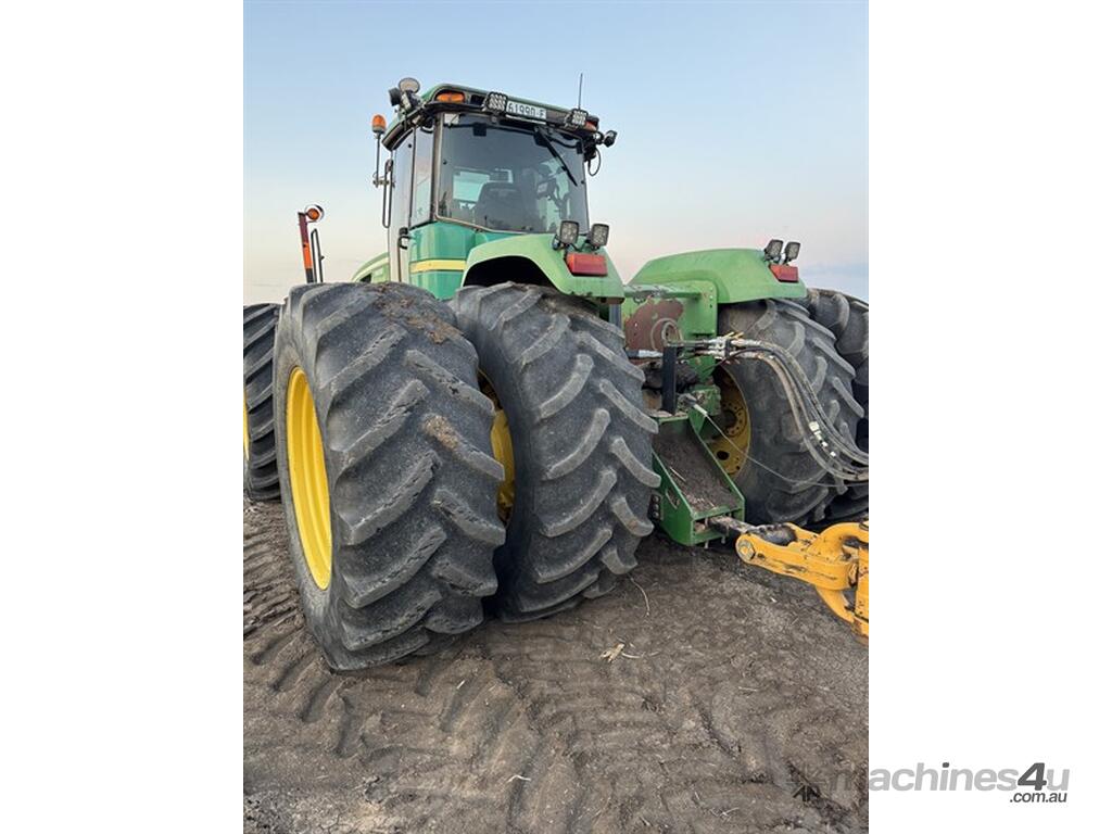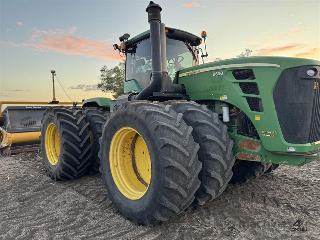 John Deere 9630 Scraper Special 4WD Tractor. Approx 11,930 hours (reads 1,930hrs), dual wheels all round (710/70R42), rear differential fully rebuilt within the last 800hrs, had new radiator/ intercooler & fan repalced in the last 2000hrs, full service completed at 11,850hrs, all wired for Trimble GPS.