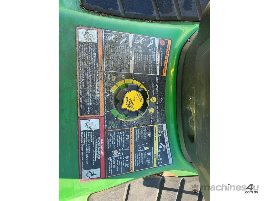 CP: 07/2010,Built: 07/2010,John Deere,X320,Ride On Mower,Engine #: FH661VC10229,2 Cyl,Petrol,Odometer not visible,219 (Hrs. Showing on Hour meter),Colour: Green,Unregistered NSW,Serial No: M0X320A160285,Sold with No Plates,Key No: 529S