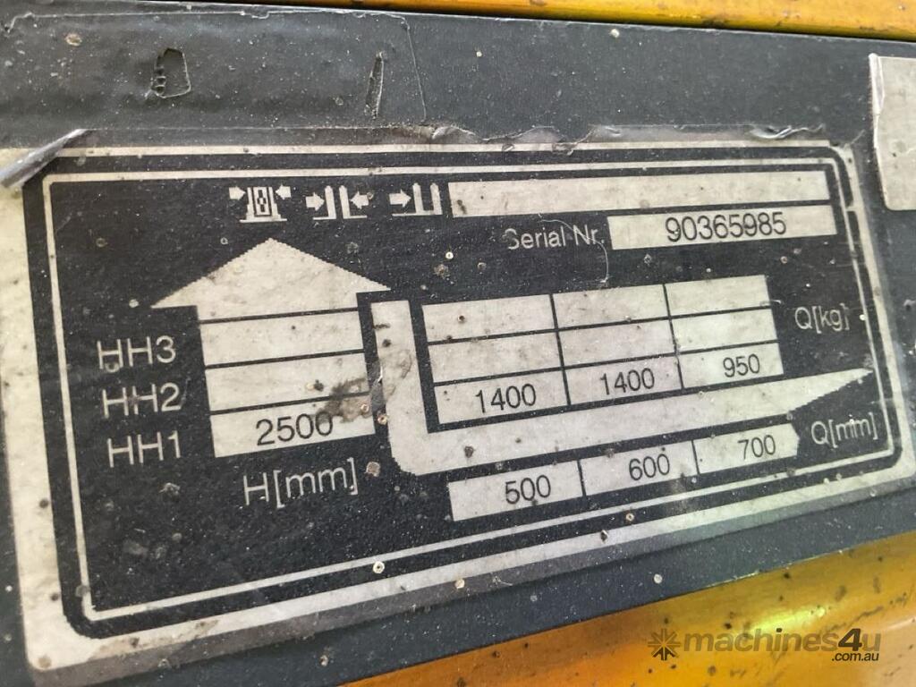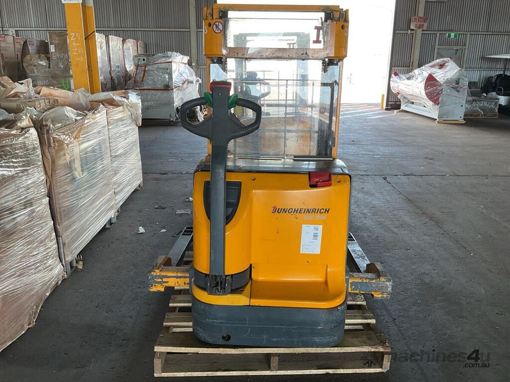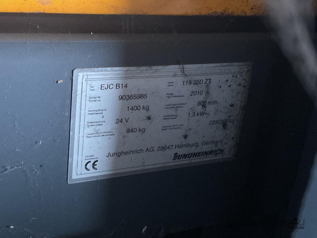 CP: CIRCA 2010,Jungheinrich,EJCB14,Electric Pedestrian Forklift,Odometer not visible,Hourmeter not visible,Colour: Yellow,Unregistered,Serial No: 90365985,Sold with No Plates,WOVR Status: WOVR N/A,Incident Type: Not Applicable