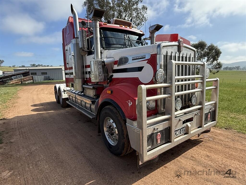 2010 KENWORTH T908 PRIME MOVER VIN. 6F5000000AA443766. Engine no. 60845239. This prime mover is fitted with a pre EGR Cummins Signature Gen 2 engine. Set at 620hp and 2050 ft-lb torque. Crate engine was fitted in 2023. Current engine had an in chassis rebuild only 40,000kms ago, completed by LAS Mechanical Dubbo. Riding on the Kenworth Airglide suspension, sitting on Meritor 46-160 diffs at 4.56 ratio. 50 inch sleeper. Hydraulics, with remote. Icepack with only 500 hours on a new engine. Inverter. Microwave