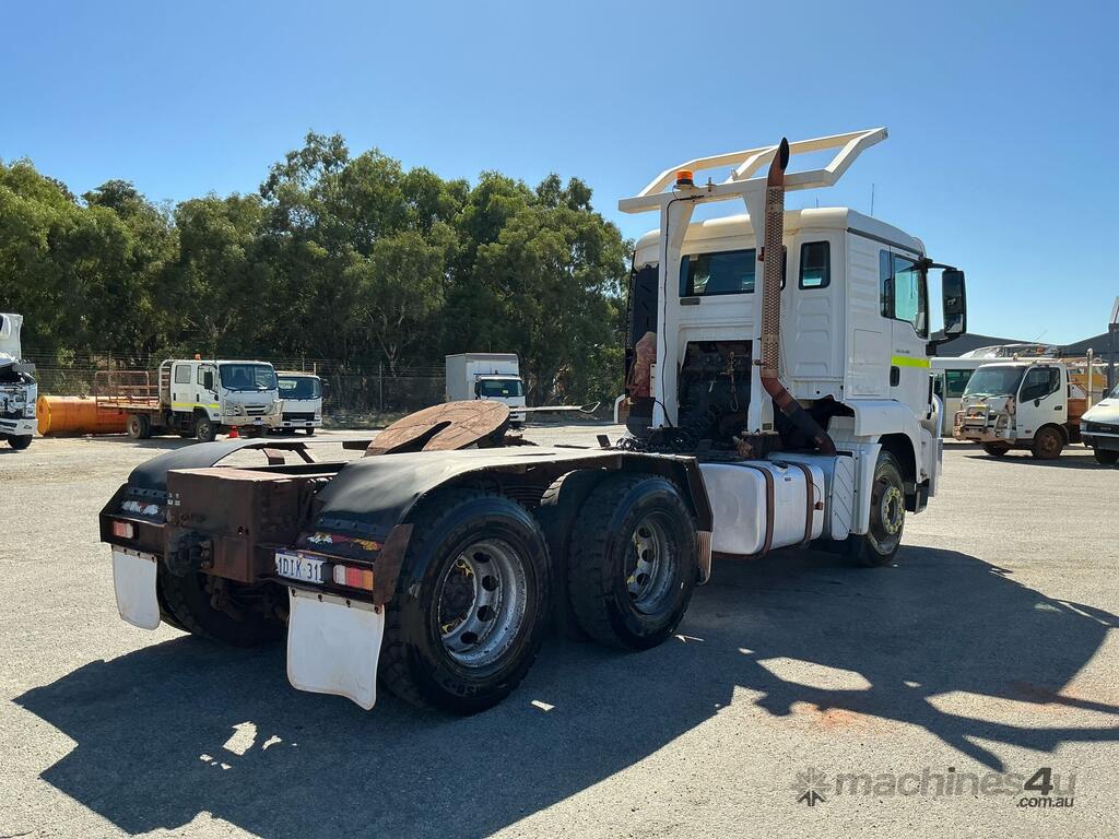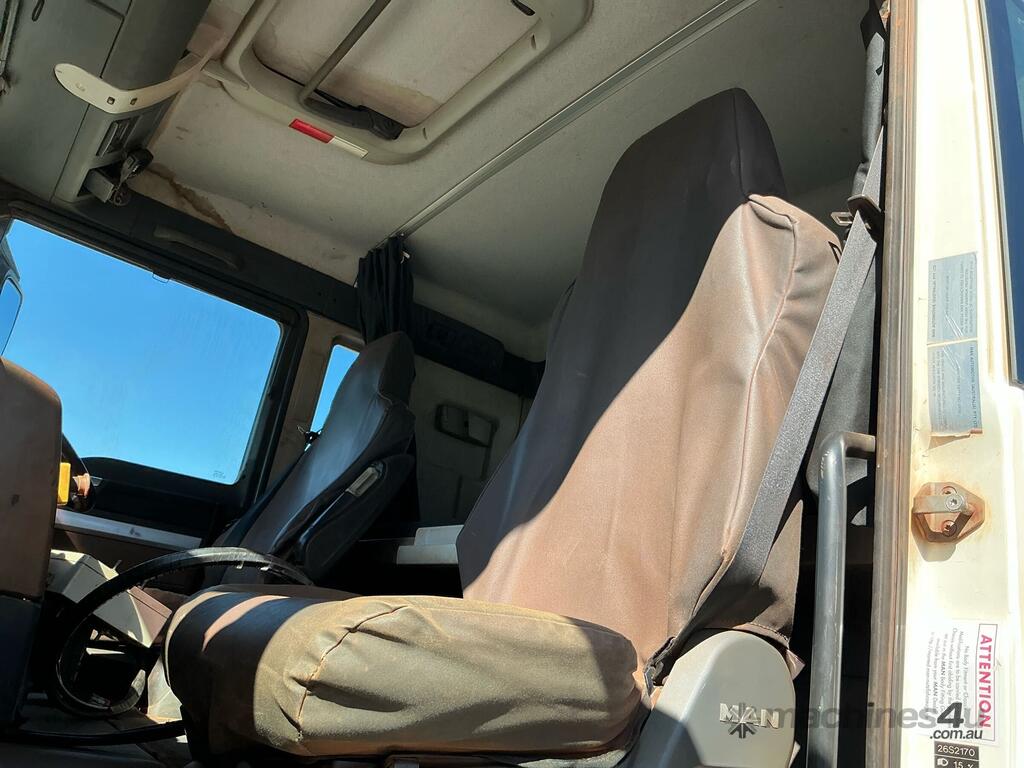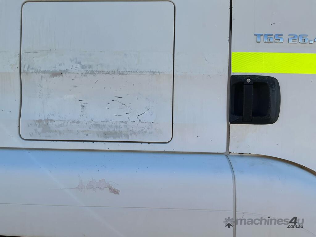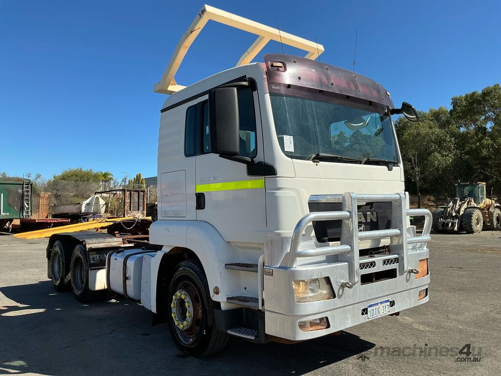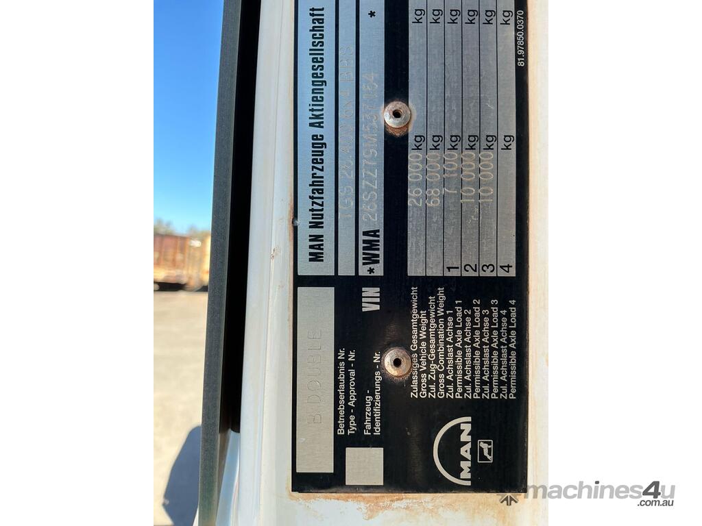 CP: 04/2010,MAN,TGA 26.400,Prime Mover Sleeper Cab,Automatic,Trunion Suspension ,6 Cyl,Diesel Turbo,312466 (Kms. Showing on Odometer),Hourmeter not visible,Colour: White,Rego. No: 1DIK313 WA,Rego expiry: 05/06/2026,VIN: WMA26SZZ79M537154,Key No: 235,Length: 23 ft,GVM: 26000,GCM: 68000,Plates to All,Key No: 235