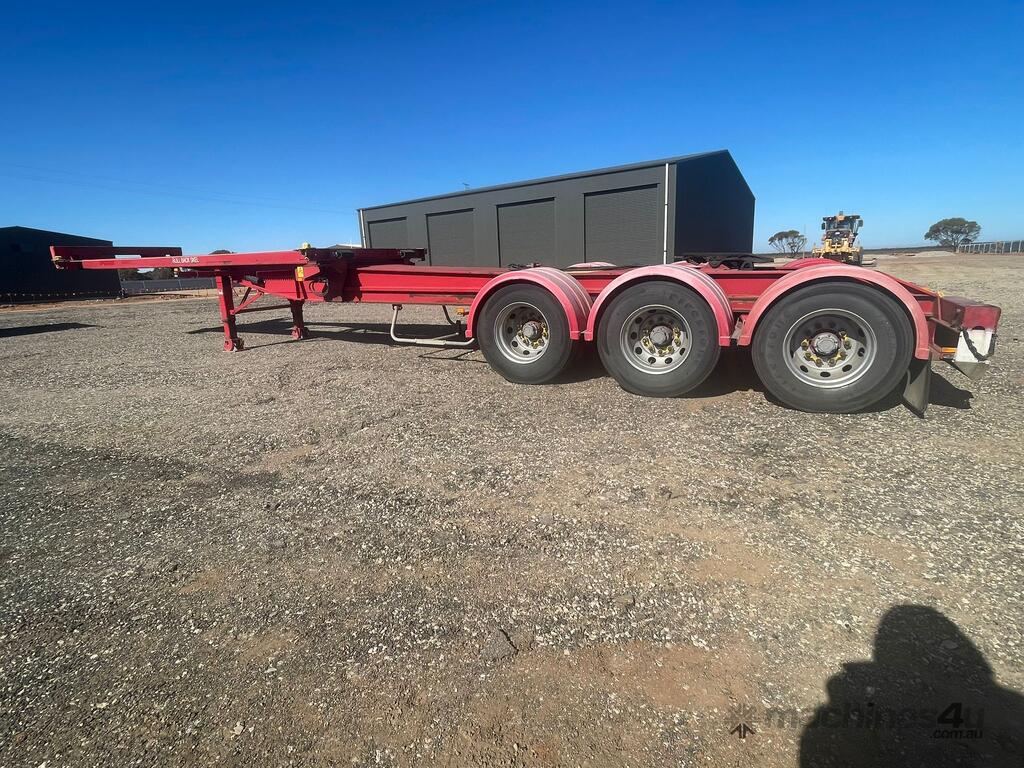 This 2010 MaxiTrans Tri-Axle B-Double Lead Skel Trailer is built for reliable container transport with retractable capability and a robust design. Ideal for operators needing versatility and durability on the road.
