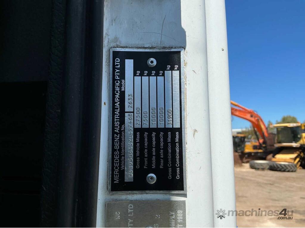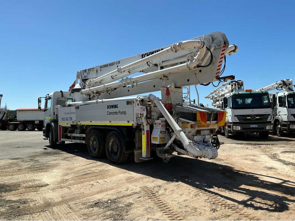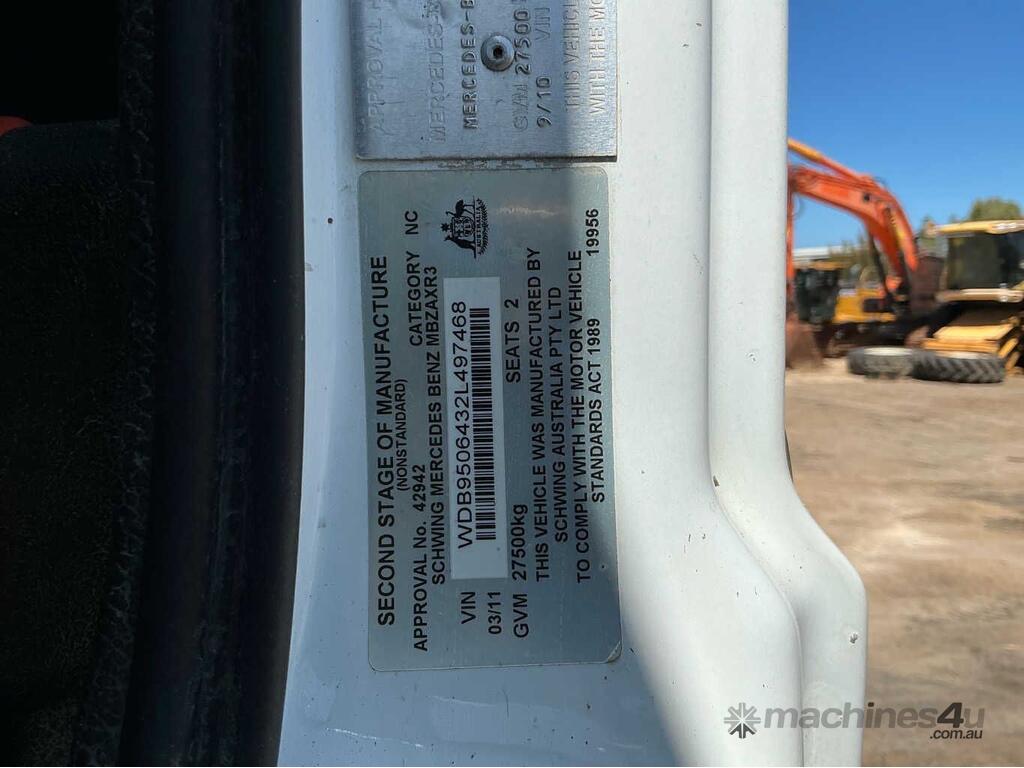 CP: 09/2010,Mercedes Benz,Axor 2633,Concrete Pump Truck,Automated Manual Transmission,Leaf Spring Suspension ,6 Cyl,Diesel,373843 (Kms. Showing on Odometer),22479 (Hrs. Showing on Hour meter),Colour: White,Rego. No: 1DXA266 WA,Rego expiry: 19/04/2026,VIN: WDB9506432L497468,Key No: 507 R,Length: 10.85 m,GVM: 27500,GCM: 31900,Plates to All,Key No: 507 R