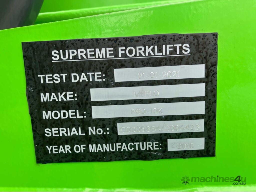 CP: CIRCA 2010,Merlo,P60-10 Panoramic,Telehandler,Engine #: NL75022U062020T,4 Cyl,Diesel,Odometer not visible,618 (Hrs. Showing on Hour meter),Colour: Green,Rego. No: NP(13365C), Unregistered NSW,Serial No: C005423,ROPS No: undefined,FOPS No: undefined,Sold with No Plates,Key No: 29