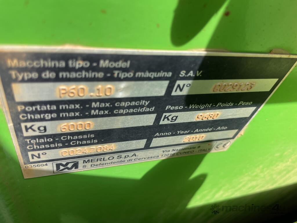 CP: CIRCA 2010,Merlo,P60.10,Telehandler,4 Cyl,Diesel,Odometer not visible,Hourmeter not visible,Colour: Green,Rego. No: NP(30111), Unregistered,Serial No: C0247084,Sold with No Plates