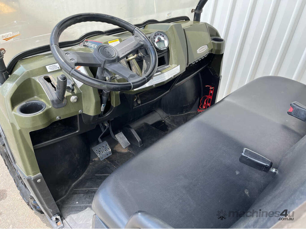 CP: 08/2010,Polaris,Ranger Diesel,ATV/VTT,3 Cyl,Diesel,2873 (Kms. Showing on Odometer),330 (Hrs. Showing on Hour meter),Colour: Green,Rego. No: NP(57974C), Unregistered QLD,VIN: 4XATH90D3B2168758,Serial No: 4XATH90D3B2168758,Sold with No Plates