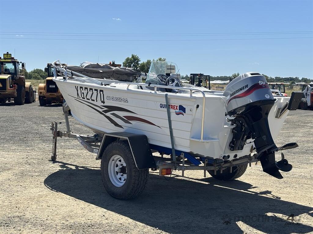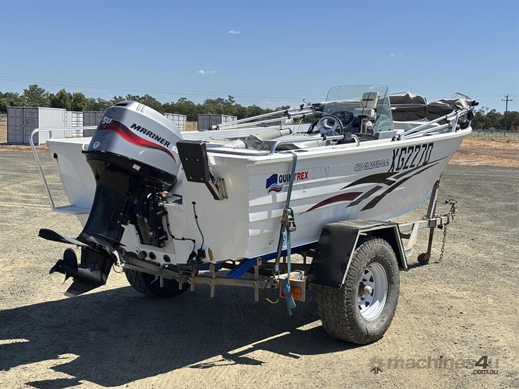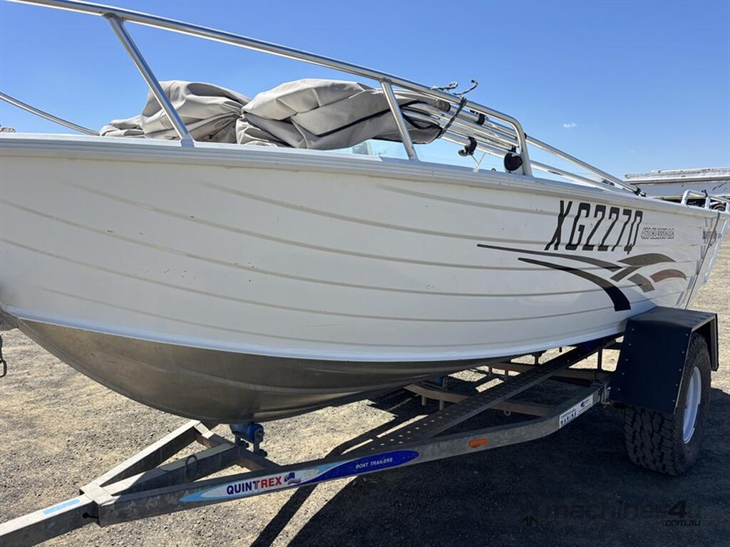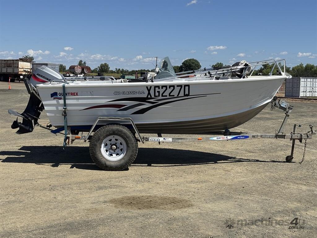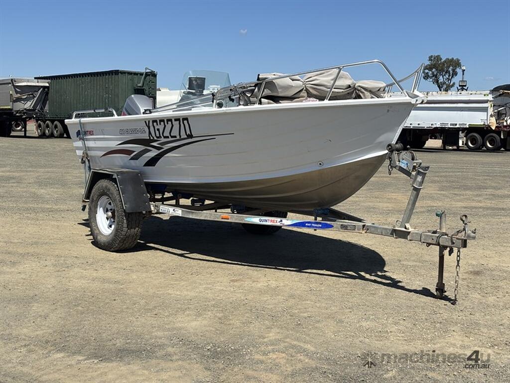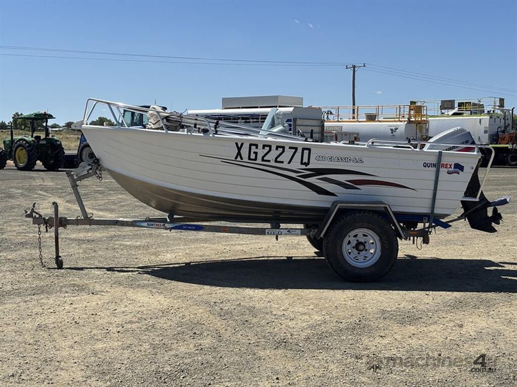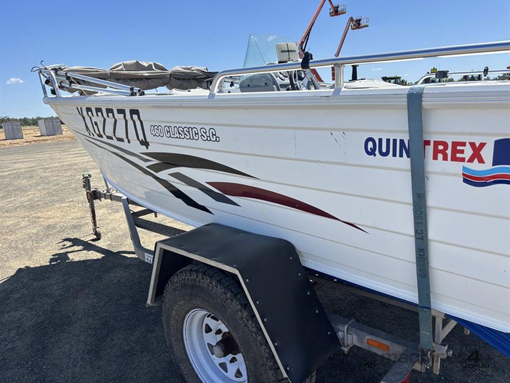 2010 QUINTREX 460 CLASSIC SC BOAT, HIN: AU-TRX19573I910, TRAILER VIN: 6HWBOATRLAC810342, 200 HOURS SHOWING, NO REGISTRATION, NO RWC. LOCATION: HALFERTY STREET, EMERALD, QLD 4720. INSPECTIONS & COLLECTIONS: MONDAY TO FRIDAY, 8AM TO 4PM. ENQUIRIES: JOHN MCDOUGALL ON OR JOHNEMERALDAUCTIONCENTRE