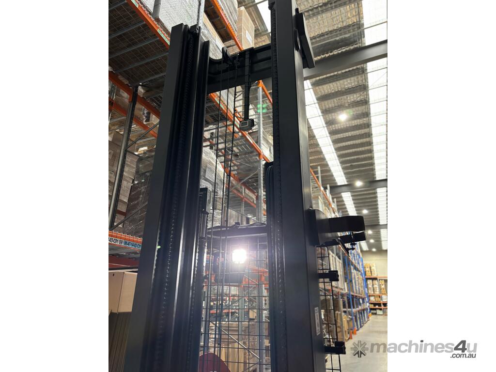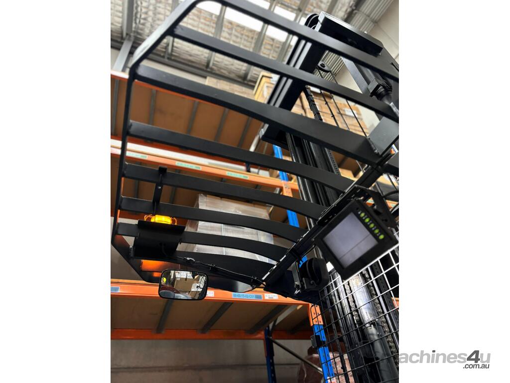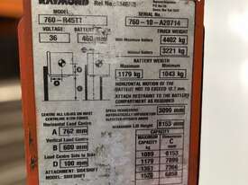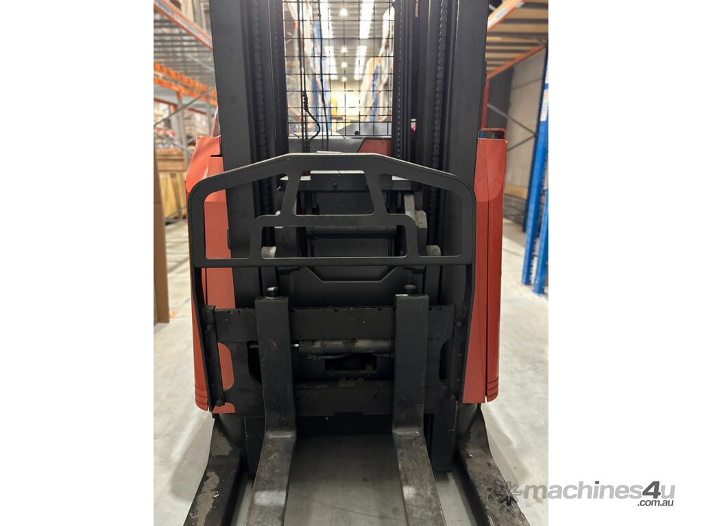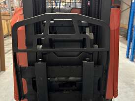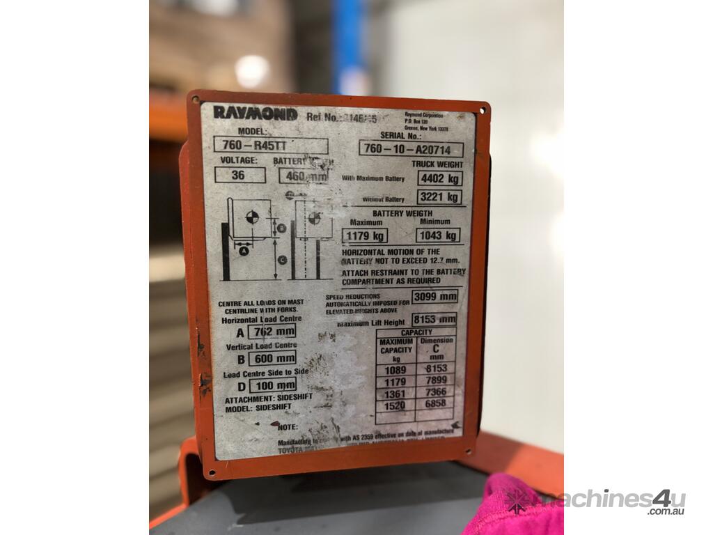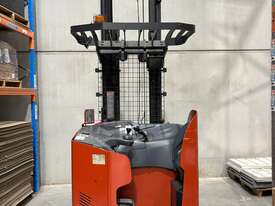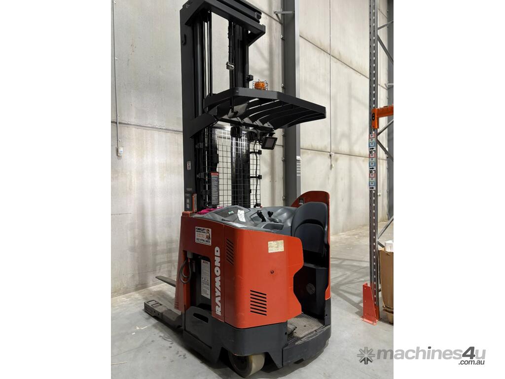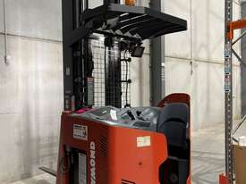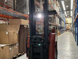 2010 Raymond R45TT reach truck in solid working condition, ideal for warehouse operations. Electric unit with sit-down/stand-up capability, fitted with solid tyres and side shift for efficient handling. Features an 8153mm lift height on a standard mast with a collapsed height of 3800mm, suitable for high racking. Nominal capacity 2000kg. Equipped with height gauge and camera for improved safety and precision. Reliable, proven unit ready for immediate use.