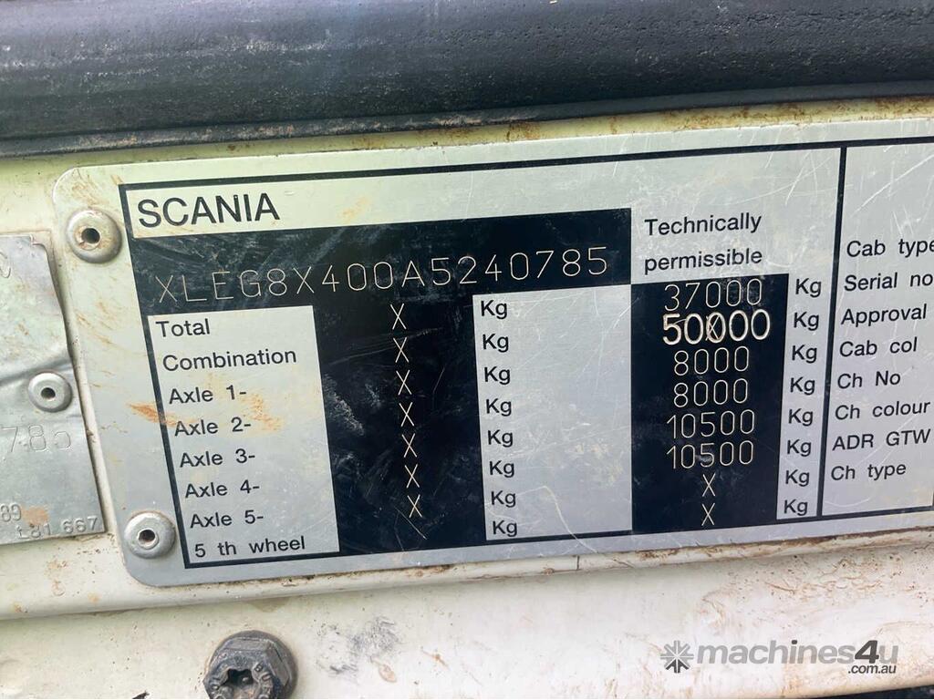 CP: 12/2010,Scania,G420,Vacuum Truck,Manual,Airbag,6 Cyl,Diesel Turbo,6 Gears,190691 (Kms. Showing on Odometer),Hourmeter not visible,Colour: White,Rego. No: XP30CP NSW,Rego expiry: 01/02/2026,VIN: XLEG8X400A5240785,Key No: 500S,Length: 9.6 m,GVM: 37000,GCM: 50000,Sold with No Plates,Key No: 500S