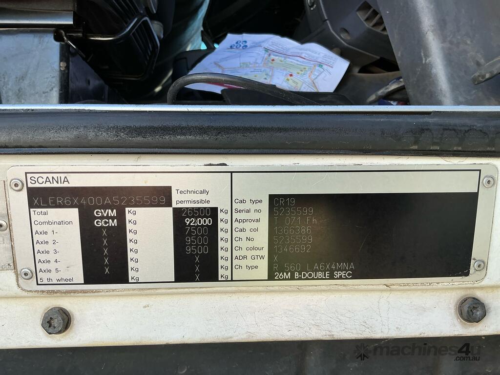 CP: 07/2010,Scania,R 6X4,Prime Mover,Automatic,Airbag,DC16,8 Cyl,Diesel Turbo,Odometer not visible,Hourmeter not visible,Colour: White,Rego. No: NP(1DTU321), Unregistered WA,VIN: XLER6X400A5235599,Key No: 424,GVM: 26500,GCM: 92000,Sold with No Plates,WOVR Status: WOVR N/A,Incident Type: Impact,Key No: 424