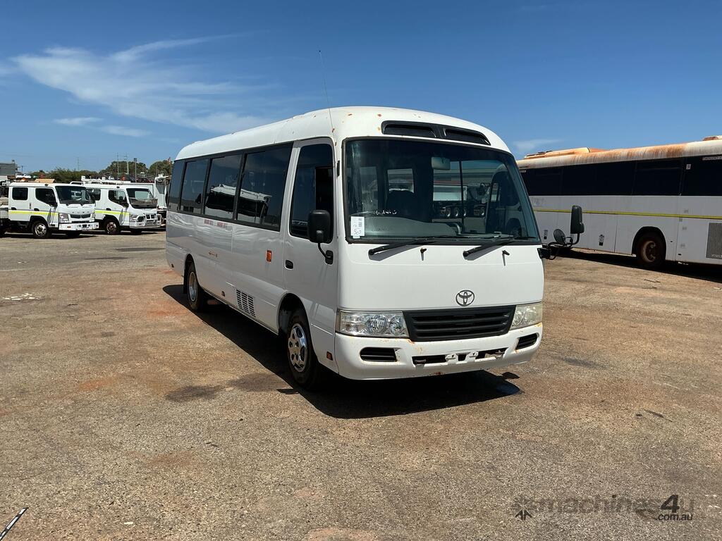 CP: 10/2010,Toyota,Coaster 50 Series,Bus,Automatic,Leaf,N04C UH,Diesel Turbo,134315 (Kms. Showing on Odometer),Hourmeter not visible,Colour: White,Rego. No: 1QBP714 WA,VIN: JTGFP38,Key No: 502,Length: 7 M,GVM: 4990,Sold with No Plates,Key No: 502