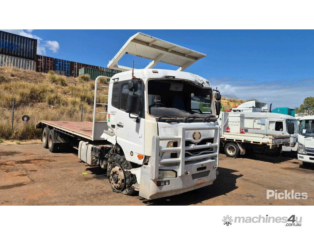 CP: 12/2010,UD,GW400,Flat Bed Tray,Automatic,Leaf Spring Suspension ,6 Cyl,Diesel,Odometer not visible,Hourmeter not visible,Colour: Yellow,Rego. No: NP(1DRJ901), Unregistered WA,VIN: JNBGWB4DL00H00471,Length: 1176 m,GVM: 26000,GCM: 70000,Sold with No Plates,WOVR Status: WOVR N/A,Incident Type: Impact