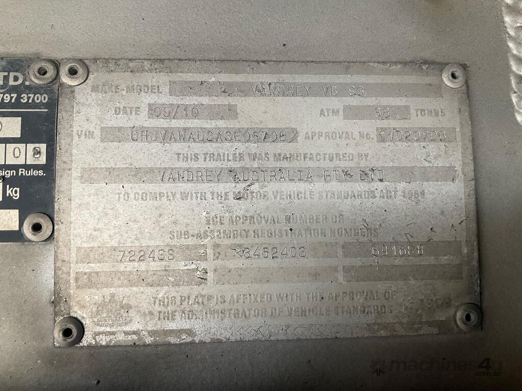 CP: 05/2010,Built: 05/2010,Vawdrey,VB S3,Tri Axle Drop Deck Curtainsider B Trailer,881591 (Kms. Showing on Hubometer),Colour: Blue,Rego. No: NP(YV35FB), Unregistered VIC,VIN: 6HJVAWAUSASE06708,Sold with No Plates