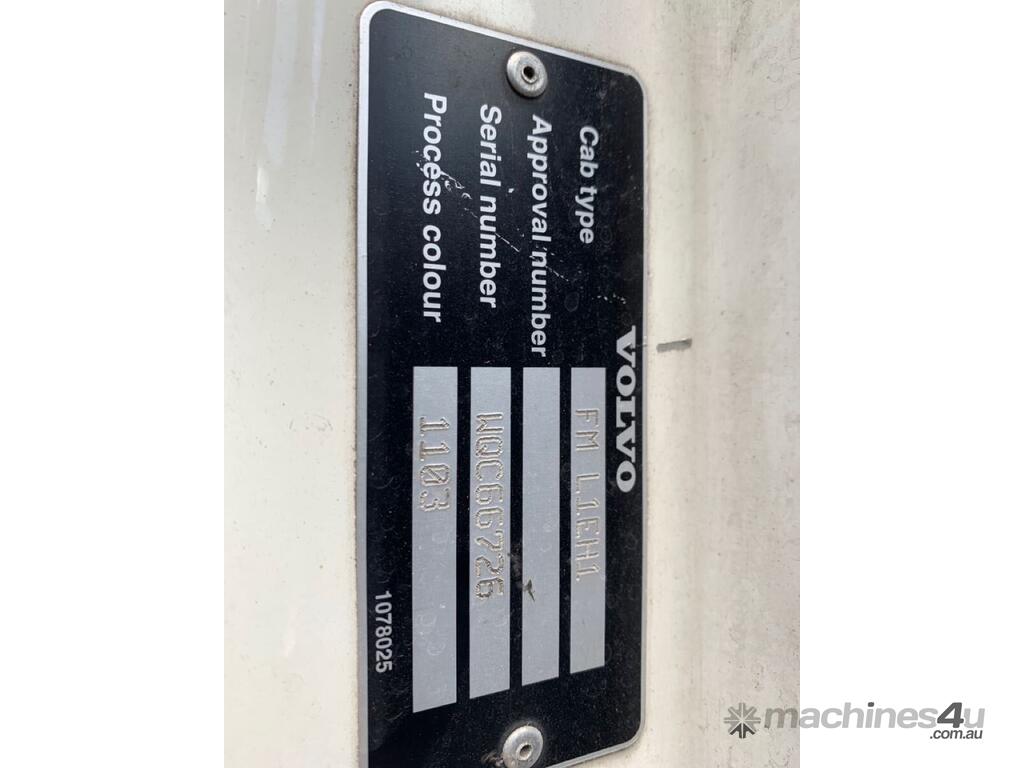 CP: 04/2010,Volvo,FM390,Cab Chassis,Automatic,spring ,6 Cyl,Diesel,Odometer not visible,Hourmeter not visible,Colour: White,Unregistered,VIN: YV5J1B1G2AD132317,GVM: 34000,Sold with No Plates