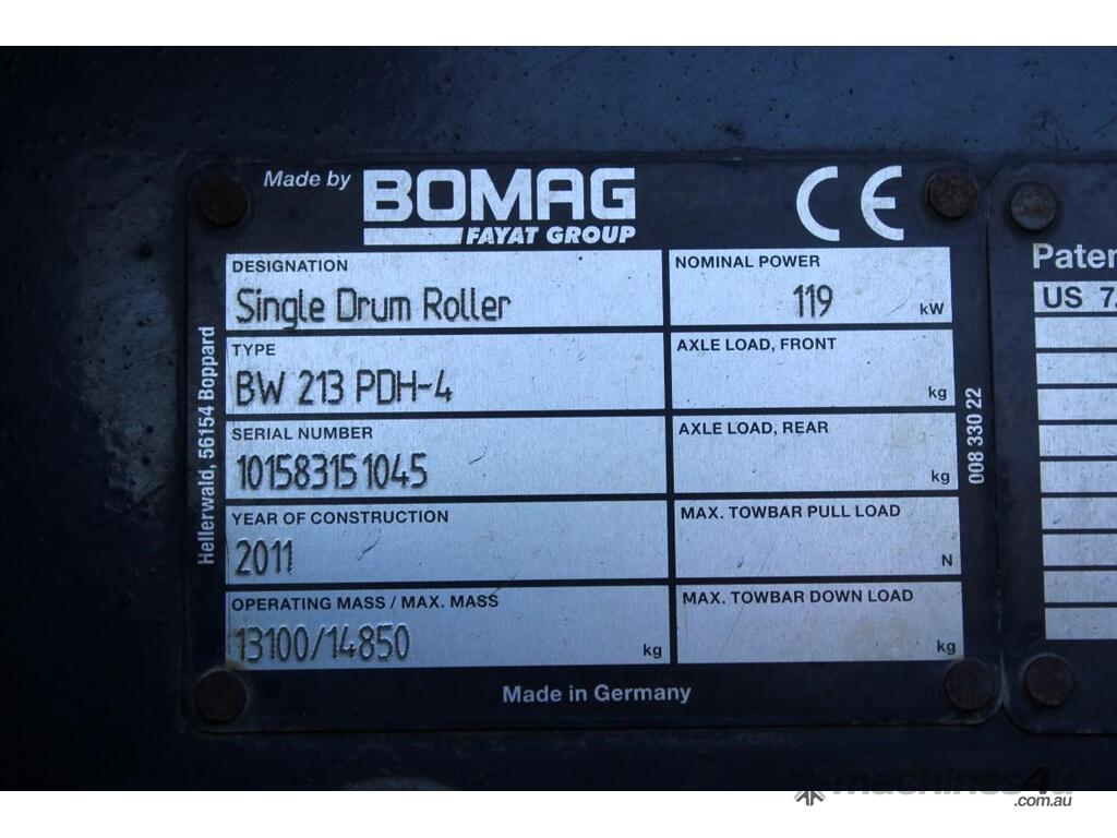 2011 BOMAG BW213PDH-4 :      $79,000 AUD($86,900 Inc. GST)