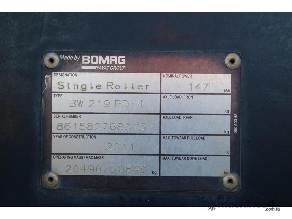 2011 BOMAG BW219PD-4 :      $79,000 AUD($86,900 Inc. GST)