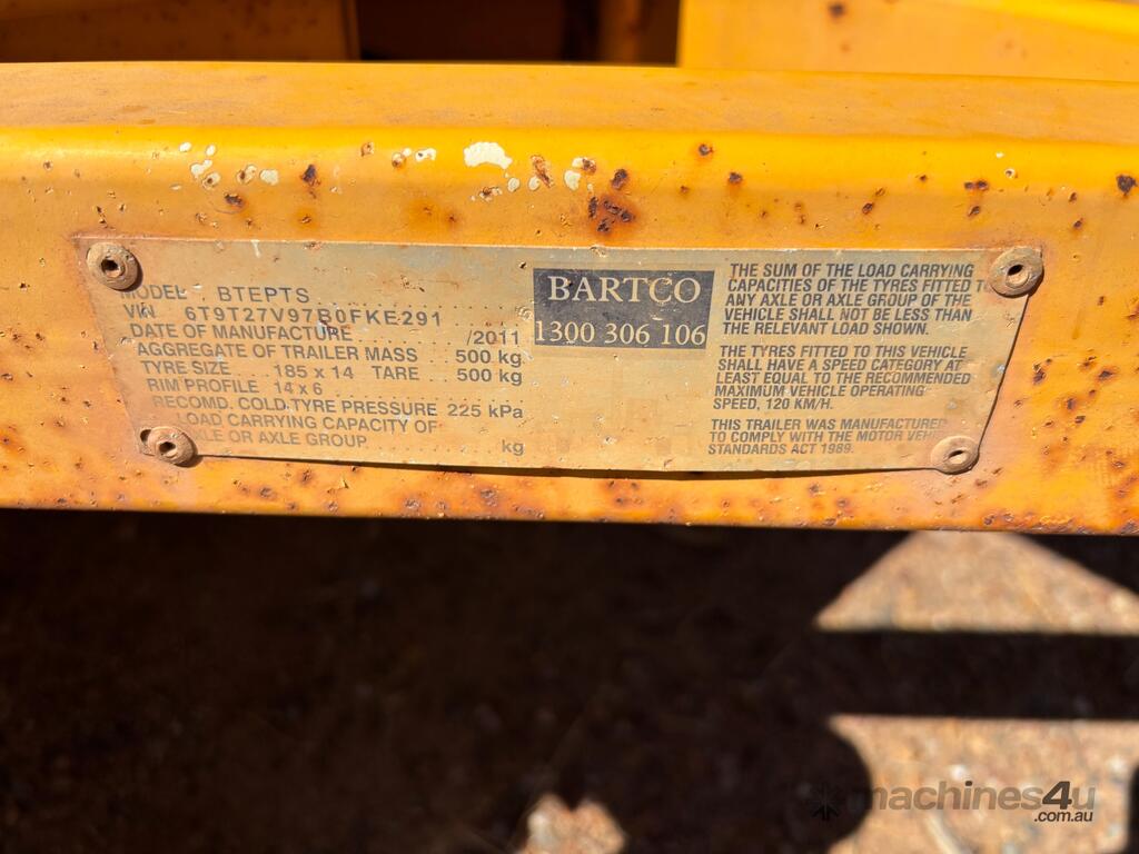 CP: CIRCA 2011,Bartco,Traffic Light Trailer Set,Hubometer not visible,Colour: Yellow,Rego. No: BO4365 WA,Rego expiry: 01/04/2026,VIN: 6T9T27V97B0FKE291,Plates to All