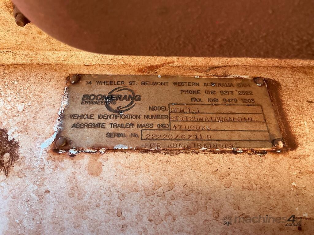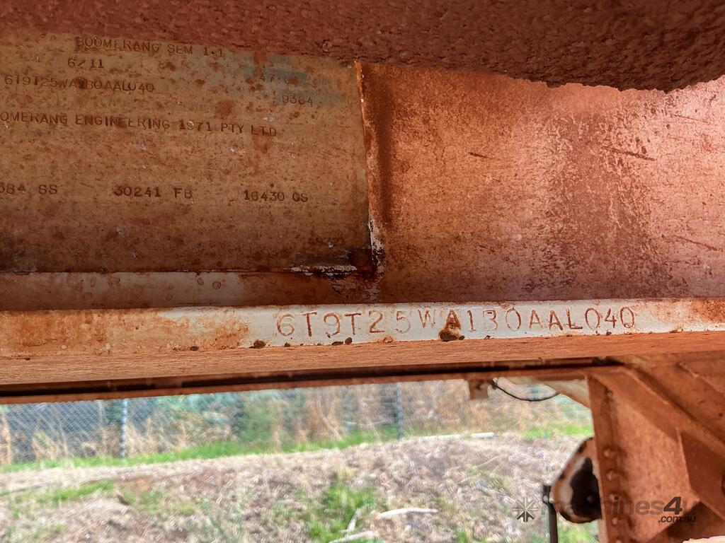 CP: 06/2011,Built: 06/2011,Boomerang,Tri Axle Belly Dumping B Trailer,75344 (Kms. Showing on Hubometer),Colour: White,Unregistered,VIN: 6T9T25WA1B0AAL040,Sold with No Plates