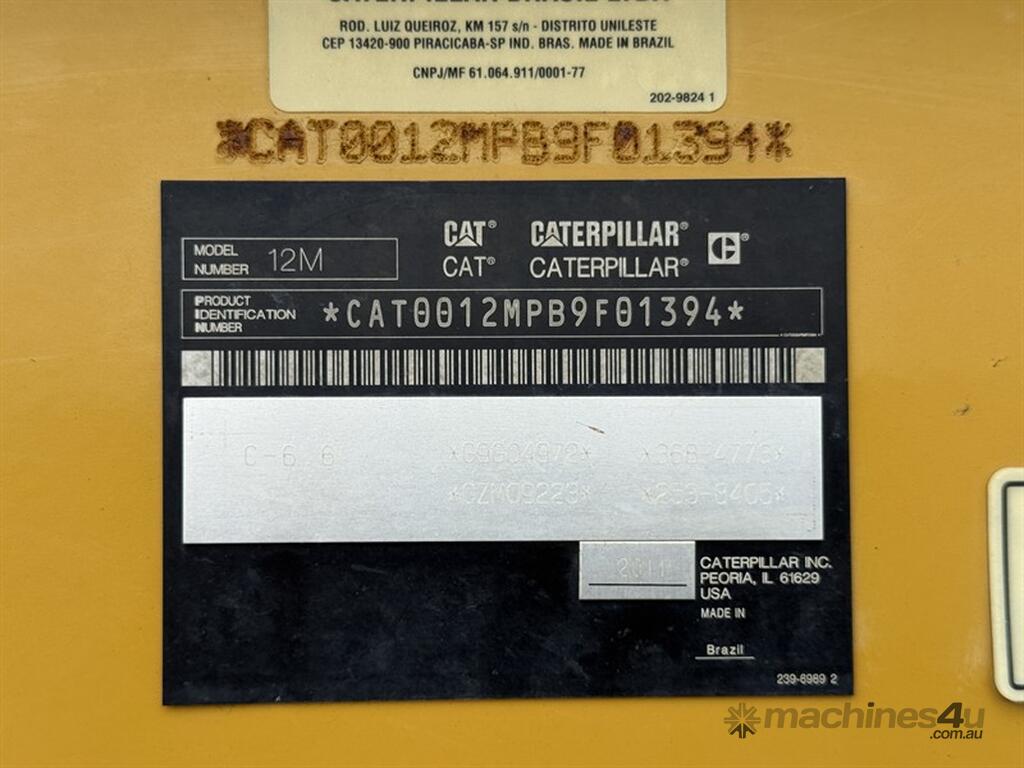 2011 CAT 12M MOTOR GRADER, S/N: CAT0012MPB9F01394, E/N: G9G04972, 7,835 HOURS SHOWING. LOCATION: HALFERTY STREET, EMERALD, QLD 4720. INSPECTIONS & COLLECTIONS: MONDAY TO FRIDAY, 8AM TO 4PM. ENQUIRIES: CAMERON BENSLEY ON OR CAMERONEMERALDAUCTIONCENTRE