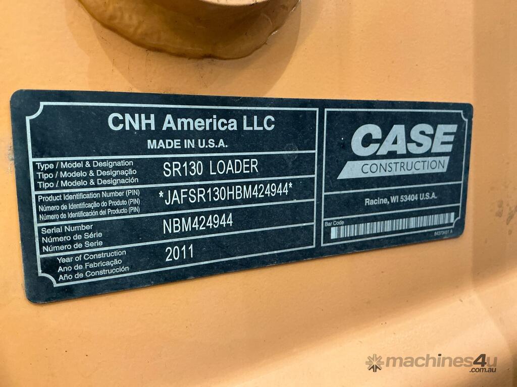 CP: CIRCA 2011,Built: 01/2011,Case,SR130,Skid Steer,Diesel,Odometer not visible,1002 (Hrs. Showing on Hour meter),Colour: Orange,Rego. No: NP(YZZ645), Unregistered,VIN: JAFSR130HBM424944,Serial No: NULL,Sold with No Plates