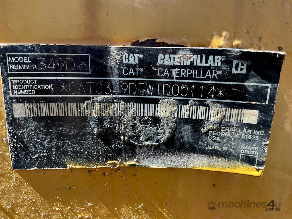 CP: CIRCA 2011,Caterpillar,349D,Excavator (Steel Tracked),6 Cyl,Diesel Turbo,Odometer not visible,19712 (Hrs. Showing on Hour meter),Colour: Yellow,Unregistered WA,VIN: CAT0349DEWTD00114,Serial No: CAT0349DEWTD00114,Sold with No Plates,Key No: 205