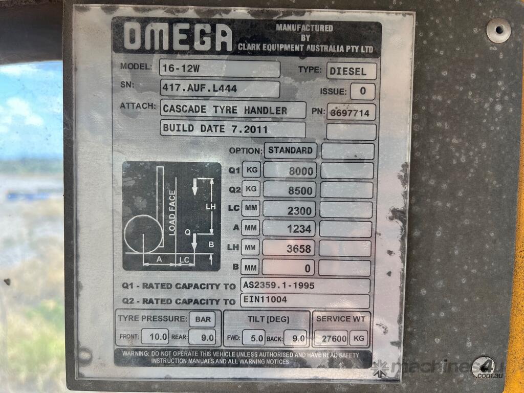 CP: 07/2011,Built: 07/2011,Clark,16-12n,Tyre Handler,6 Cyl,Diesel Turbo,6999 (Hrs. Showing),Colour: Yellow,Unregistered,Serial No: 417.AUF.L444,Sold with No Plates,Incident Type: Not Applicable