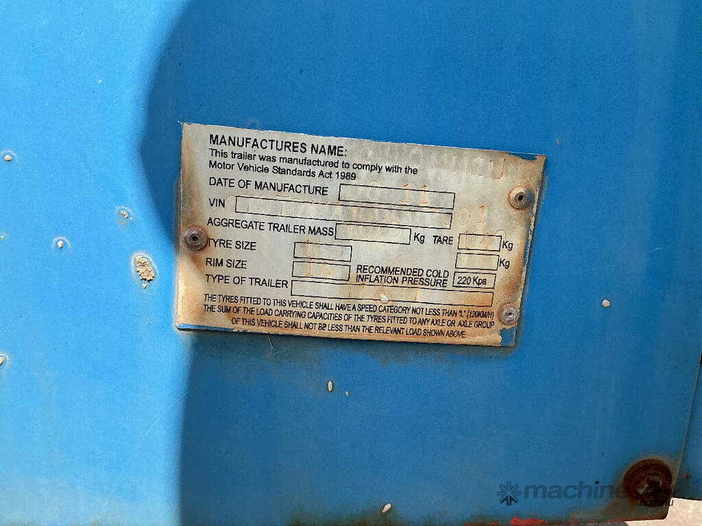 CP: 08/2011,Built: 08/2011,Crommelins,Single Axle Lighting Tower Trailer,Hubometer not visible,Colour: White,Unregistered,VIN: 6T9T26WA1B0BK8001,Sold with No Plates