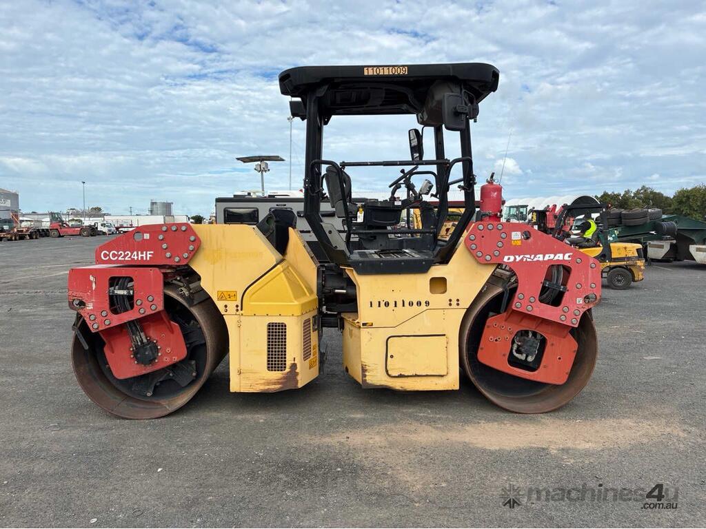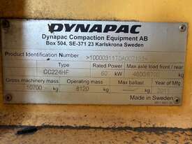 CP: CIRCA 2011,Dynapac,CC224HF,Dual Smooth Drum Roller,4 Cyl,Diesel,Odometer not visible,1932 (Hrs. Showing on Hour meter),Colour: Yellow,Unregistered,Serial No: 10000311T0A007133,Sold with No Plates,Key No: 388