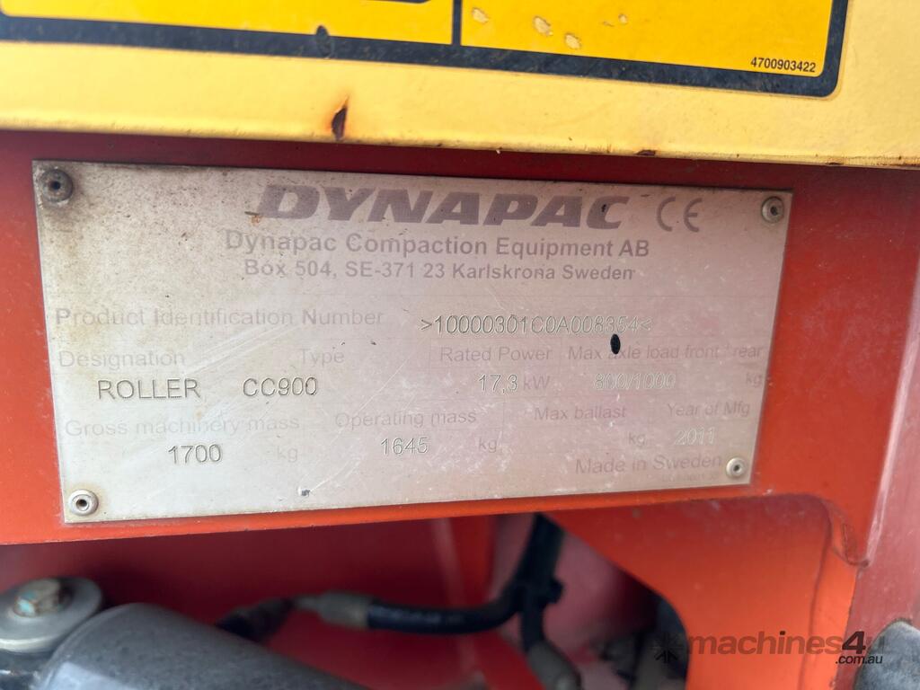 CP: CIRCA 2011,Dynapac,CC900,Articulated Dual Smooth Drum Roller,Diesel,Odometer not visible,1103 (Hrs. Showing on Hour meter),Colour: Yellow,Unregistered,Serial No: 10000301C0A008354,Sold with No Plates,Key No: 33