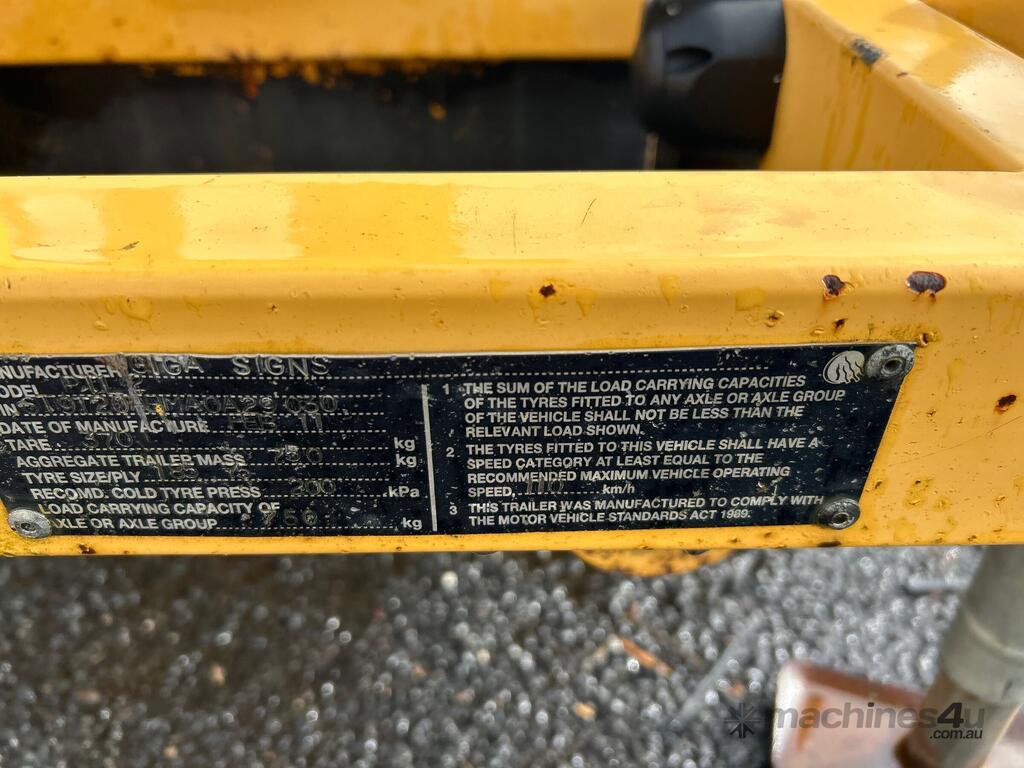 CP: 02/2011,Giga Signs,PTL2,Single Axle Traffic Light Trailer Combination,Hubometer not visible,Colour: Yellow,Unregistered,VIN: 6T9T20ABMA0A29030,Sold with No Plates