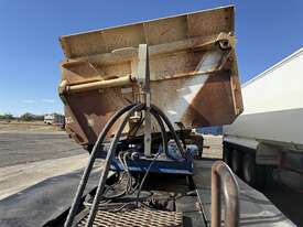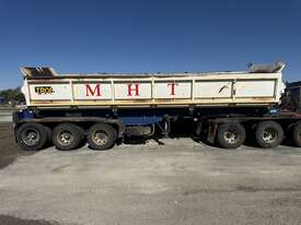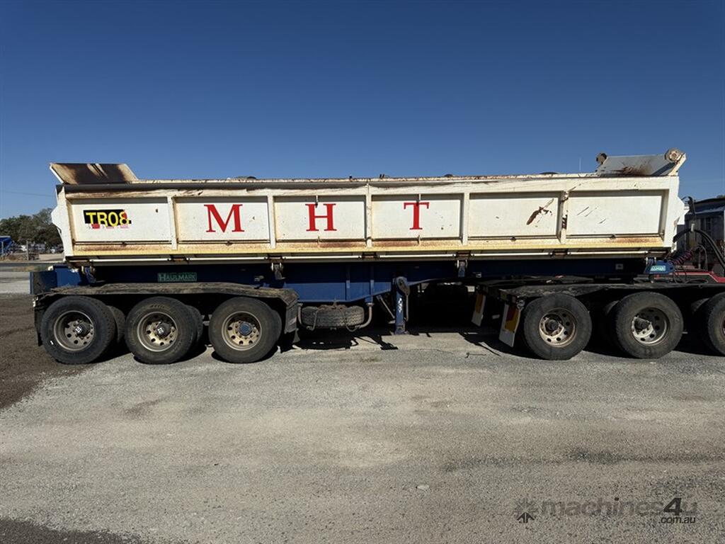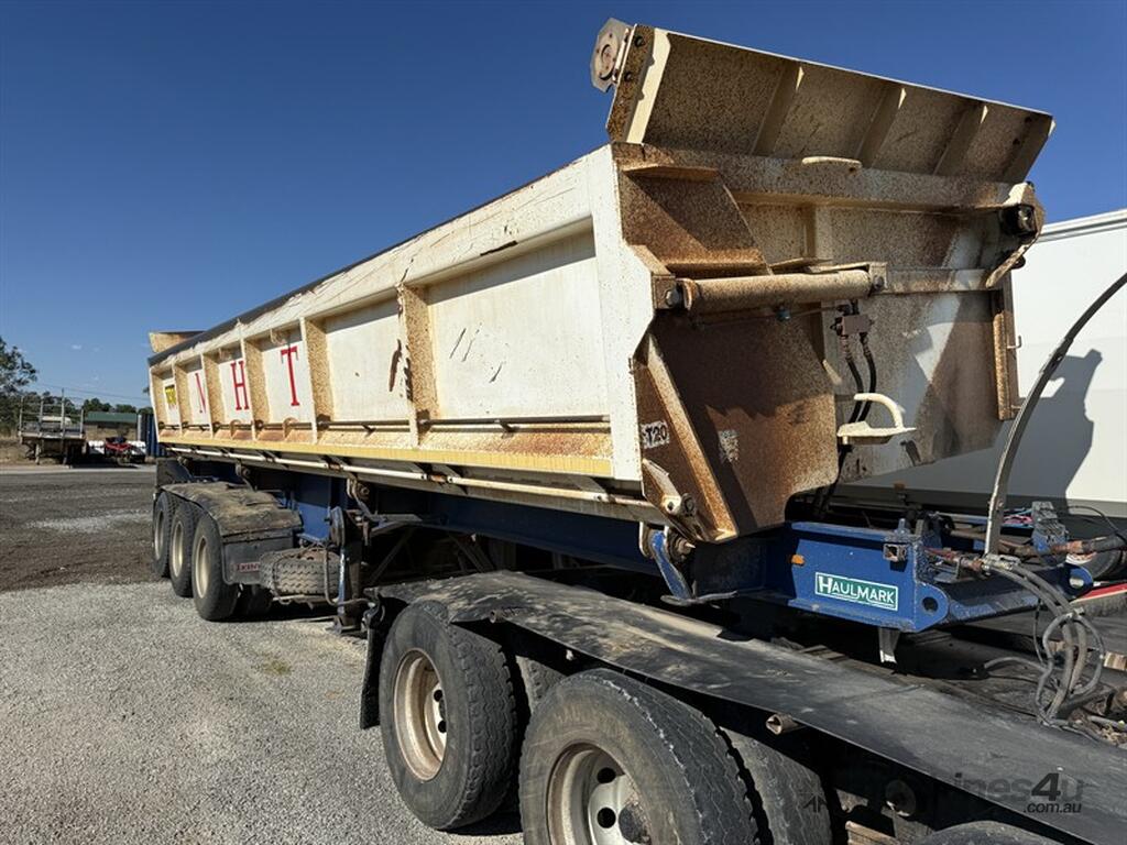 2011 HAULMARK 3ST 37 TRI AXLE ROAD TRAIN LEAD SIDE TIPPER, VIN 6T9T25ABFB0ADM013. K Hitch axles on spring suspension, 8' 1" spread, 10s stud Alcoa rims, yard button, load tarp bracket fitted (no tarp or bar), rubber mud guards, tool box, dual tyre rack. Bin measurements: length 8.65m, width 2.5m, height 1.10m. Overall length 10m and pin to front 0.7m (90mm pin). ATM 41 tonne. Trailer is in good condition and has been working as a B trailer. Please note lift rams are removed as currently being reconditioned