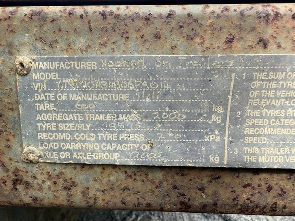 2011 HOOKED ON TRAILERS CAR TRAILER, VIN: 6T9T20ABAB06P9014, NO REGISTRATION, NO RWC. LOCATION: HALFERTY STREET, EMERALD, QLD 4720. INSPECTIONS & COLLECTIONS: MONDAY TO FRIDAY, 8AM TO 4PM. ENQUIRIES: RYAN OGDEN BROWN ON OR RYANEMERALDAUCTIONCENTRE